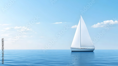 Obraz premium Sailboat on calm ocean under a blue sky with clouds; ideal for travel,...