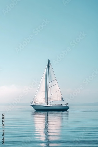 Fototapeta premium Sailboat on Calm Ocean Water with Blue Sky