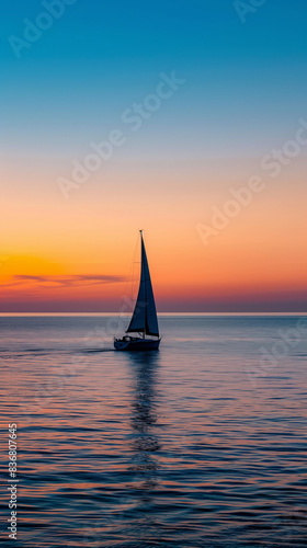 © Cozy Art, Fototapeta premium Sailboat on calm sea during vibrant sunset