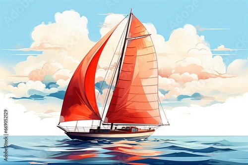Fototapeta premium sailboat sailing in open sea at sunrise illustration