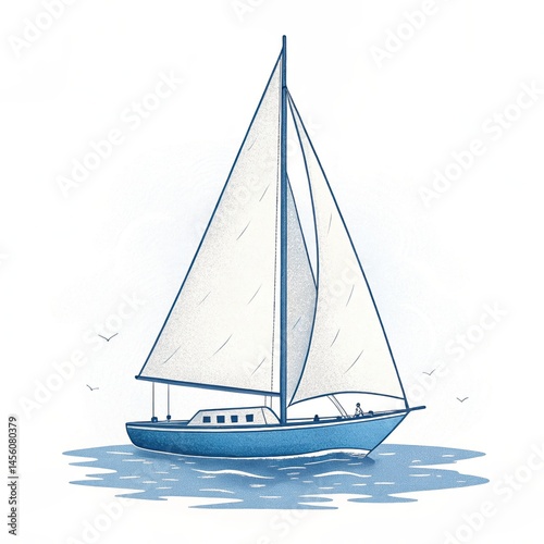 © ItziesDesign, Fototapeta premium Sailboat sailing on water with gentle waves and birds in the background.