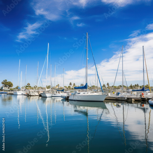© mindstorm, Fototapeta premium sailboats anchored in a harbor on a sunny day.