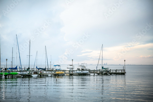 © Ursula Page, Fototapeta premium Sailboats at Pier At Sunset in Fairhope, Alabama