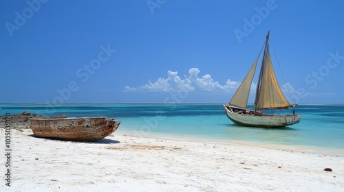 © Sandu, Obraz premium Sailboats on Pristine Beach