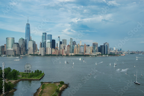 © Mariusz, Fototapeta premium Sailboats on the Hudson River with the New York skyline.