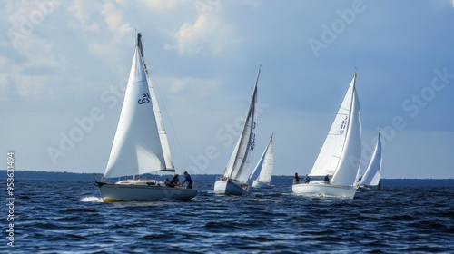 Fototapeta premium Sailboats Racing on a Calm Sea