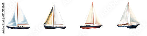 © T Studio, Fototapeta premium Sailboats with colorful sails racing across the open water during a maritime sailing regatta event on a sunny summer day