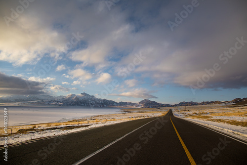 Naklejka premium Sailimu Lake frozen in winter in Xinjiang, China