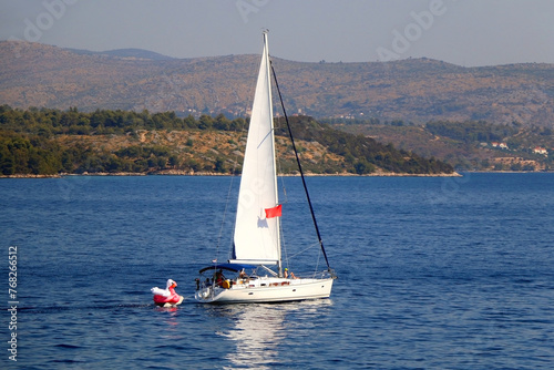 Naklejka premium Sailing boat and beautiful Adriatic sea landscape in Croatia.