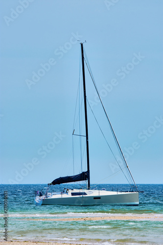 © Claudia Nass, Naklejka premium sailing boat lying in front of Benodet coast, a small town in Brittany, France