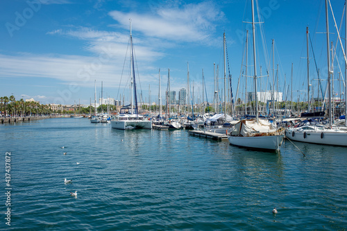 Fototapeta premium Sailing boat parking on the shore of Barcelona, summer background
