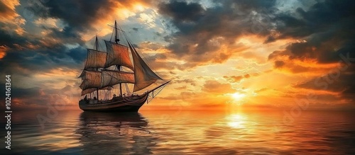 © isrofiyah, Obraz premium Sailing into the Golden Sunset