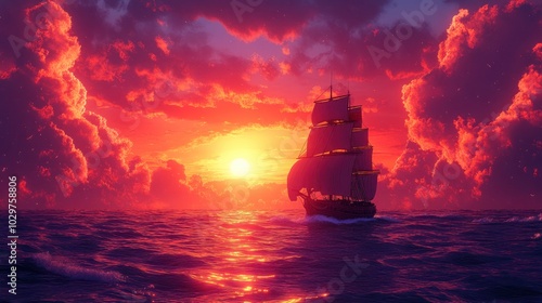 © Dlomiro, Fototapeta premium Sailing into the Sunset
