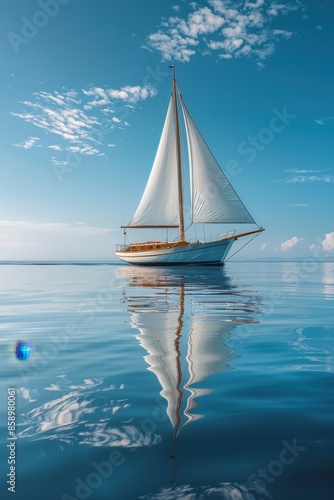 © Shadowkiruu, Fototapeta premium Sailing into Tranquility: A Sailboat on a Calm Sea