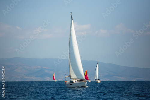Naklejka premium Sailing luxury boats in the yacht regatta, Aegean Sea Greece.