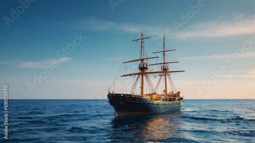 © Supath, Fototapeta premium Sailing Ship at Sunset on the Ocean