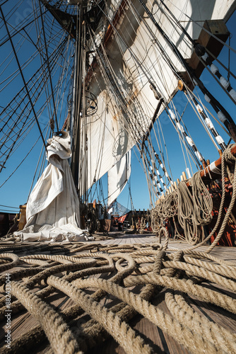 © Anton Blanke, Obraz premium Sailing Ship Deck with Ropes and Sails