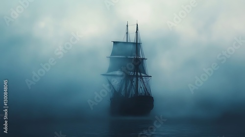 © Ardhana, Fototapeta premium Sailing ship in dense ocean fog