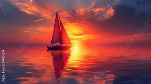 © rabbit75_fot, Fototapeta premium Sailing ship in sea water at sunset.