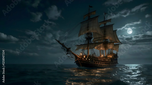 © Thilmi, Fototapeta premium sailing ship in the sea