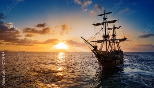 © MuhammadAsif, Fototapeta premium sailing ship with sunset