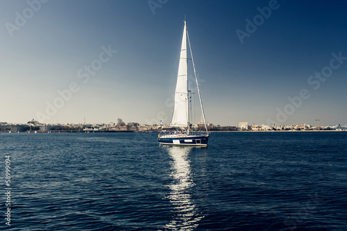 © Andrew Bayda, Obraz premium Sailing ship yachts with white sails