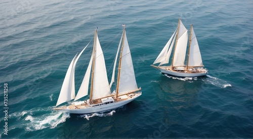 © MochSjamsul, Fototapeta premium sailing ships with white sails on the high seas