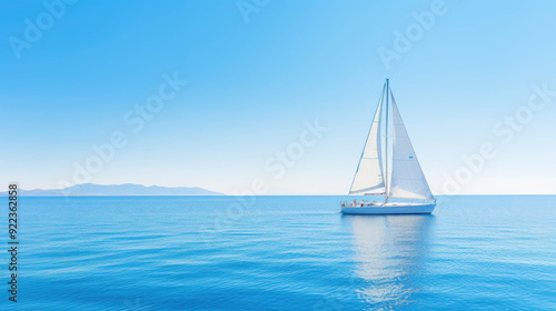 Fototapeta premium Sailing Through Calm Blue Waters Under a Clear Sky Reflecting Peace and Freedom