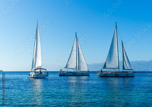 Fototapeta premium sailing yacht boats with white sails in blue sea , seascape of beautiful...