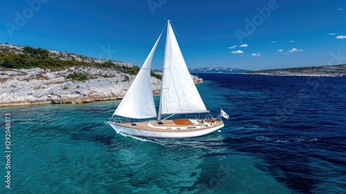 © KIMEHIME, Fototapeta premium Sailing yacht cruises tranquil Adriatic Sea, sunny day