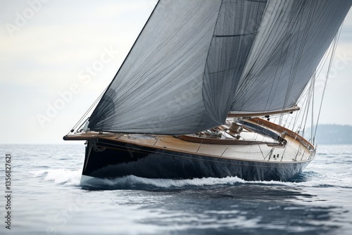 Fototapeta premium Sailing yacht gliding through calm waters with billowing sails in a serene...