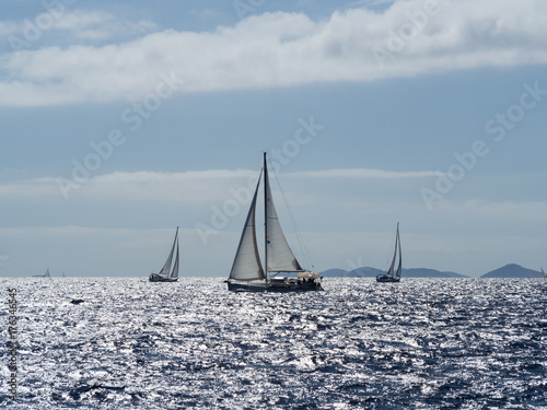 Fototapeta premium Sailing yacht in Croaatia, windy summer on the boat between rocky islands of...