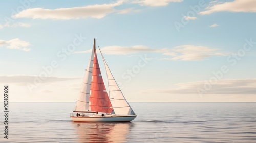 © Voilla, Fototapeta premium Sailing yacht in the sea at sunset.