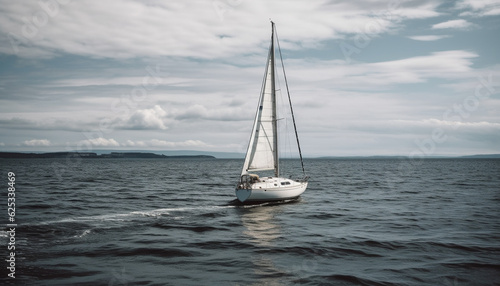 Obraz premium Sailing yacht on blue water, wind and waves, summer adventure generated by AI