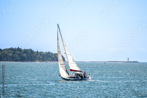 © Gelu Popa, Obraz premium Sailing yacht racing on blue sea