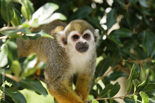 Obraz premium Saimiri / Practiced squirrel monkey approached the person.