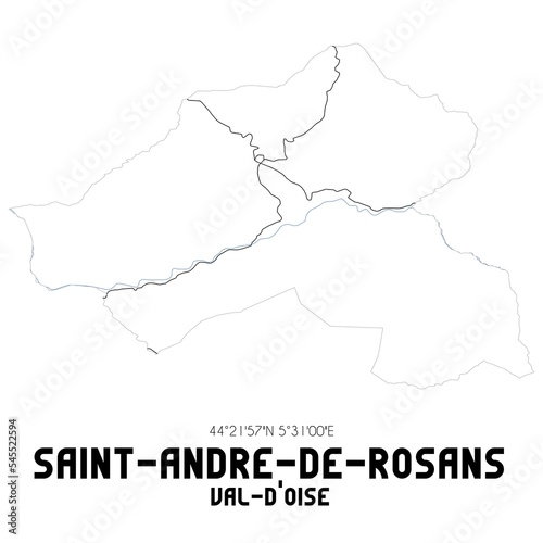 Fototapeta premium SAINT-ANDRE-DE-ROSANS Val-d'Oise. Minimalistic street map with black and white lines.