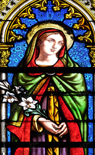 Fototapeta premium Saint Camilla, stained glass window in the Basilica of Saint Clotilde in...