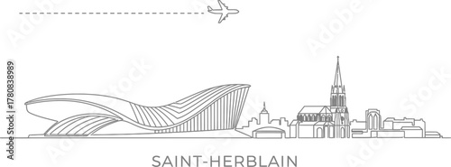 © godsfavoritearts, Fototapeta premium Saint-Herblain City Skyline with Airplane Flying Overhead