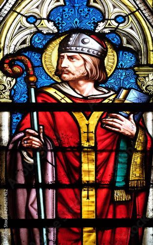 Fototapeta premium Saint Hilarius, stained glass window in the Basilica of Saint Clotilde in...