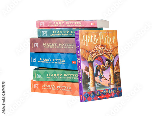 © seanlockephotography, Naklejka premium Saint Louis, MO . USA - 02.02.2011: All Seven Harry Potter Novels By JK Rowling On White Background