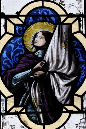 © Godong Photo, Naklejka premium Saint Marien church. Stained glass. Joan of Arc. Mezilles. France.