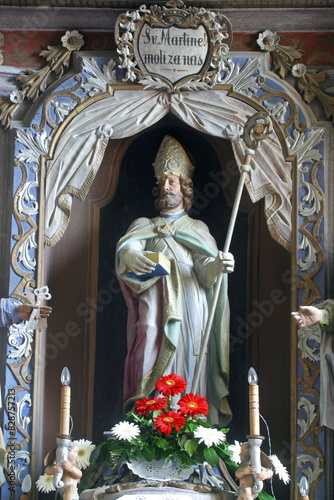 © zatletic, Naklejka premium Saint Martin statue at the main altar in the Parish Church of Saint Martin in Pisarovinska Jamnica, Croatia