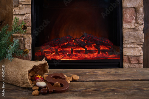Obraz premium Saint Nicholas - Sinterklaas sweets near the fireplace