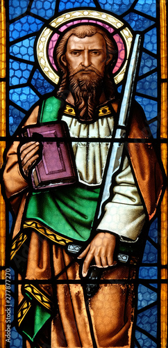 Fototapeta premium Saint Paul the Apostle stained glass window in parish church of Saint Mark in...