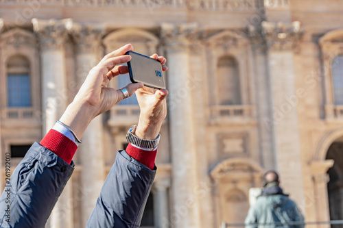 Fototapeta premium Saint Peter Basilica with people crowd in Vatican Rome