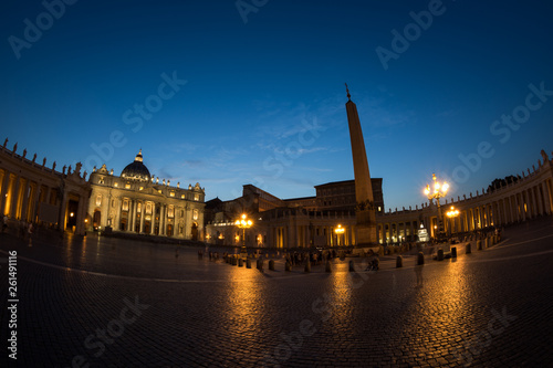 Naklejka premium Saint Peter Square and Saint Peter Basilica at sunset time