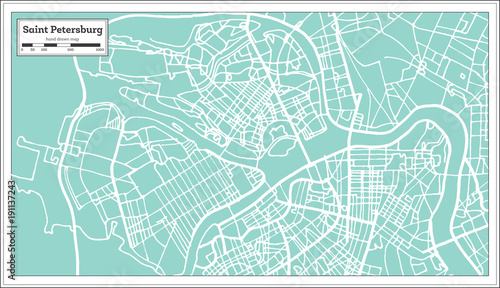 © BooblGum, Fototapeta premium Saint Petersburg Russia City Map in Retro Style. Outline Map.
