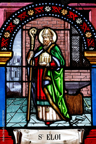 Obraz premium Saint Pierre church. Stained glass. Saint Eligius. Toucy. France.
