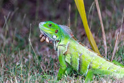 Naklejka premium Saint Vincent and the Grenadines, young iguana with ticks